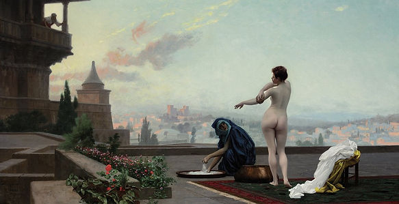 Before them, during the 19th century, orientalist artists have commonly used female nudity on their artworks. Their main concepts were especially ''The Harem'' and ''Slave Bazaar'' which were appropriate to hide the nudity as a secondary message behind the real depictions. Below are the samples of some 19th century painters;